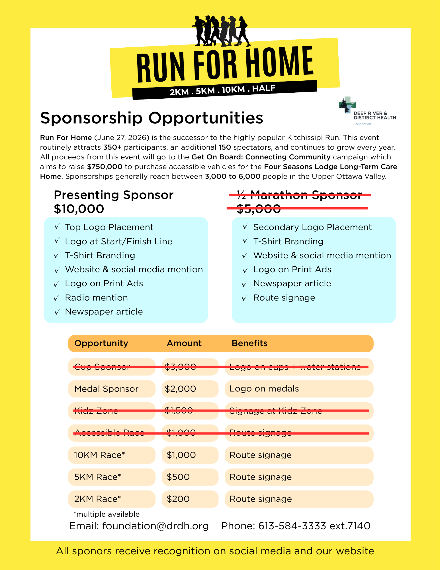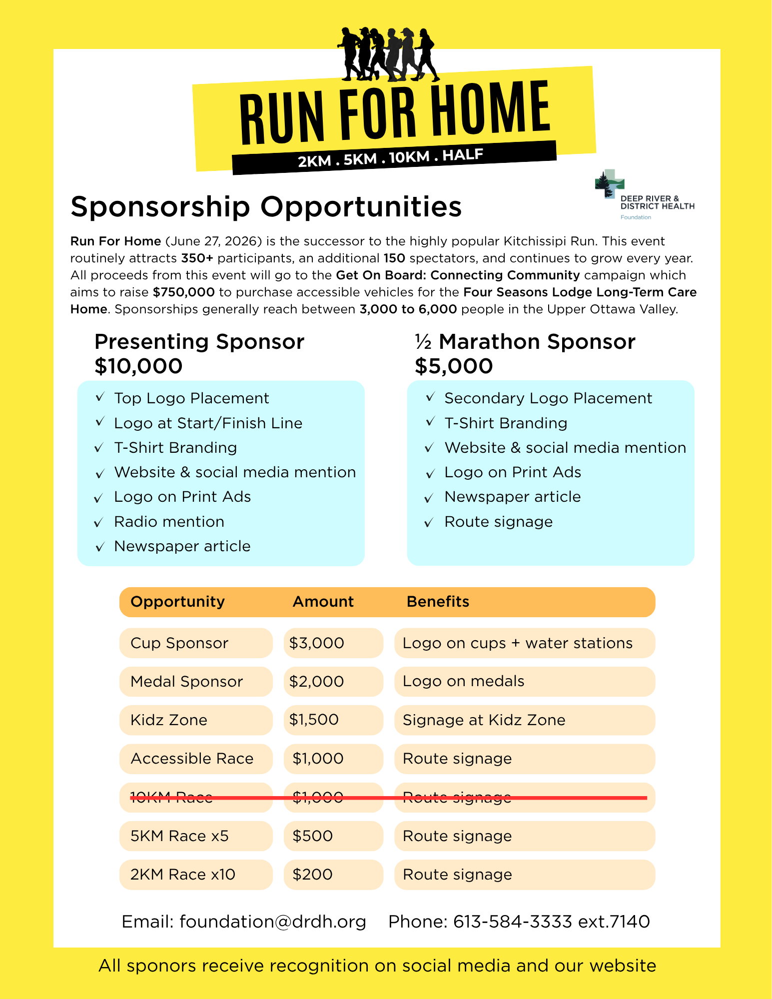 Please note: All sponsors are welcome to set up a table on the day of the event as a form of advertising, introducing yourself to the community, or just to cheer on the participants.