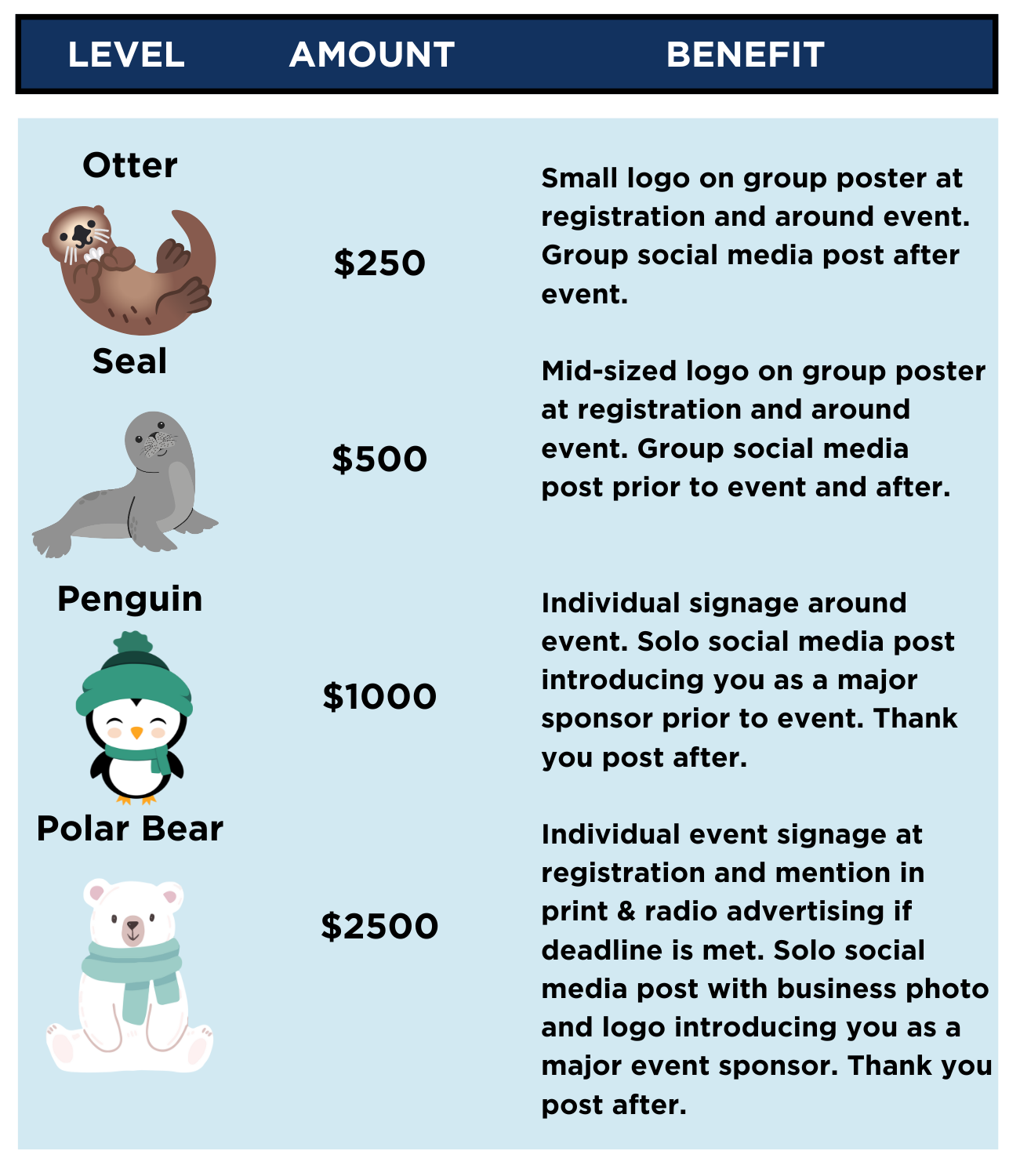 Here are the sponsorship levels for this event: